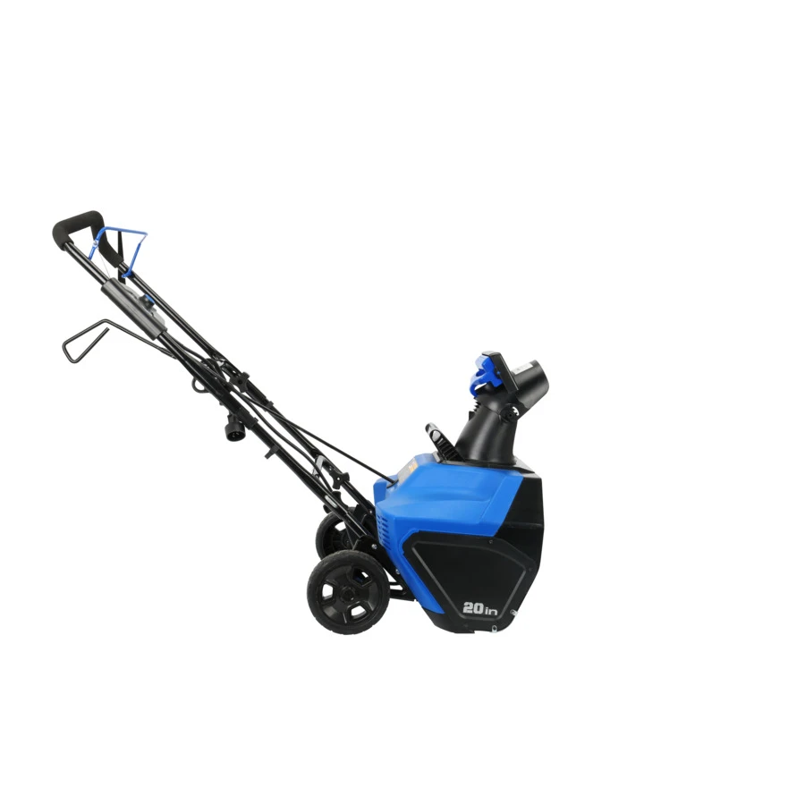 This corded snow thrower is great for clearing snow fall up to 10 inches in height. Throws snow up 20-in. The maximum clearing height of 10-in, 7-in wheels make it great for cleaning sidewalk, patios, decks and driveways. Directional control allows snow to be discharged to the correct location. Easy transportation and maneuverability. 5 year warranty limited.