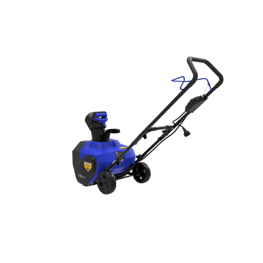 The Kobalt 16-Inch 10 Amp electric snow shovel is an easy-to-use alternative to gas-powered snow throwers. Using a 10 amp motor, it clears a 16-inch path in snow up to 10 inches deep, and discharges snow up to 20 feet away, perfect for sidewalks, patios and driveways. Discharge chute rotates 180 degrees giving you completedirectional control of snow discharge. An adjustable handle, 7-inch radial wheels, and a cord lock make this tool easy to use. This electric snow shovel does not put out carbon emissions.