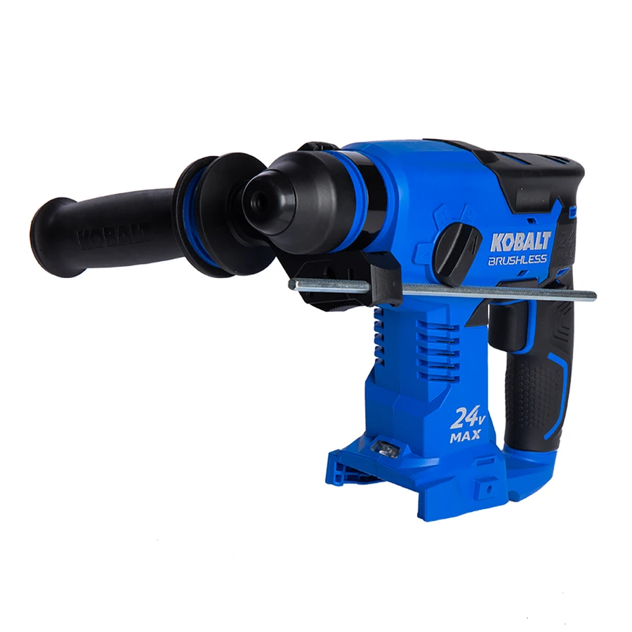 This Kobalt 24-V brushless rotary hammer provides 0-1400 rpm and 0-4500 bpm, enough power to get through various materials. This cordless tool features a 4-mode selector that includes rotary hammer, hammer only, rotation only and chisel modes, perfect to complete any kind of job. It also features a mechanical clutch, a retractable hanging hook and it’s compatible with all Kobalt 24 V Max batteries (sold separately). Backed by a 5-year limited warranty. Tool only.