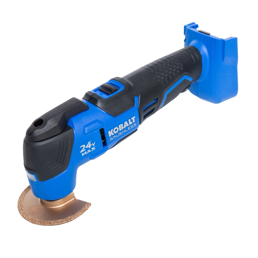 Whether you need a tool for grinding or cutting, this multi-tool will complete the job. Its brushless motor provides longer run time, but also produces 11,000-20,000-OPM. The tool-less blade change provides quick and easy accessory changes, reducing downtime on the job. An integrated work light ensures better accuracy in dimly lit work spaces. The kit includes: multi-tool, 9 sanding papers, base plate set, 3 plunge cut blades, scraper blade, grout removal blade, flush-cut blade, bag.This product is compatible with all Kobalt 24-volt max Li-ion batteries and chargers for your convenience (batteries and chargers sold separately) and comes with a 5-year warranty. Tool only.