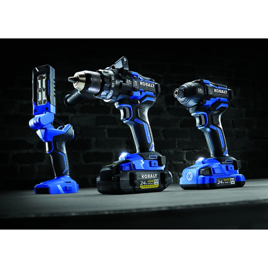 Efficiently complete your tasks with these Kobalt cordless tools. They are suitable for both professional contractors and DIYers, and their compact design will allow you to work in tight spaces while reducing fatigue. The tool kit includes a cordless drill driver, an LED work light and an impact driver. The hammer drill driver’s brushless motor delivers up to 1200 in-lb of torque. As for the impact driver, it will provide an impressive 2400 in-lb of power. And last but not least, the powerful LED light will help you see better in the dark thanks to its 700 lumens output. Also included are a 2.0 Ah battery, a 4.0 Ah ultimate output battery, a charger, 2 belt clips, a double-sided bit (PH2 and SL6), a PH2 bit, an auxiliary handle and a hard case. Battery and charger included.