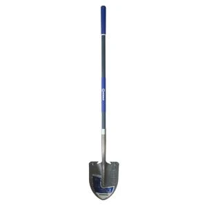 Kobalt digging shovel features a heavy-gauge, tempered steel blade for increased strength and durability and sturdy handle you can count on. This fibreglass handle is stronger than wood and durable to endure frequent heavy-duty jobs. Mid-sleeve and cushion grip add comfort and control, while large, steel collar adds strength when force is applied. This long handle shovel is great for digging in the toughest soil conditions. It has a large step-shoulder with deep treads for secure footing to increase driving power when digging.