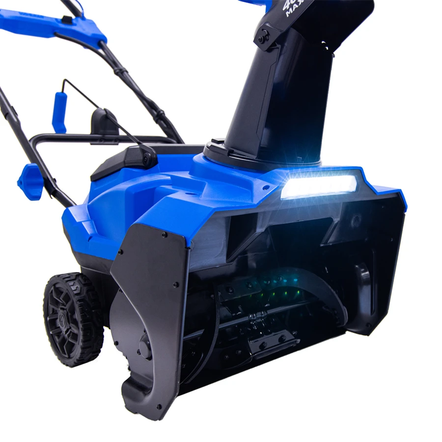 Dual 40V battery bays and brushless motor for greater power and efficiency. Throws snow up to 30ft with 180 degrees of chute rotation. 21 in clearing quickly clear up to 6 in of snow from a 8 car driveway. Steel-reinforced rubber auger with variable speed control. LED light bar for increased visibility. Quick fold handle and lightweight design for easy storage. 5 year limited tool warranty. Battery not included.
